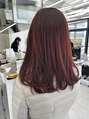 黒髪/ボブルフ/小顔/レイヤーカット/レッドカラー/ブリーチ無し