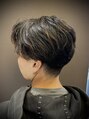 ブルーブラック/フェザーパーマ/刈り上げセンターパート/目白