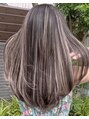 松村独自の誰にも真似できない特殊なバレイヤージュ・ハイライト 手法でデザインしています。難しいブリーチデザインは、アシスタントに任せる事なく全部僕が直接施術させて頂きます。【柏/柏駅/髪質改善/バレイヤージュ/ハイライト/白髪ぼかし」