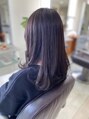 暗めのグレージュカラーです!室内では落ち着いた明るさに、自然光に当たると透明感を感じる色合いに仕上げました。毛先はワンカールで柔らかな動きを出しました。