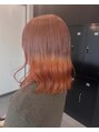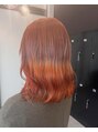 全頭ブリーチして柔らかいpink beigeと明るいorangeのグラデーションカラー