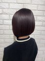 パツっとしたラインが可愛いミニボブスタイルです!イルミナカラーで染めているのでピンクの色味がさらに濃く、深く入ります♪イヤリング部分に、色の系統をあえて変えたダークグレージュをいれて楽しいカラーに◎ショートスタイルなら星野にご相談ください!