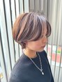 ハイライトを入れたショートウルフです。さりげなくコントラストを出して大人の印象を持たせているデザイン