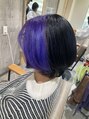 前半分をブリーチしてブルーパープルカラー!残りはブルーブラックに!凄いオシャレで可愛いスタイル♪