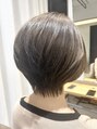 ケアブリーチを1回し、エメラルドグリーンカラーをオンカラー。