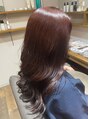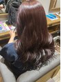 ダークトーンのピンクヘアカラーです。ブルー系のピンクは大人女性にオススメなお色。トリートメントでツヤツヤに仕上げます。
