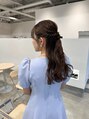 パーティーにお呼ばれでヘアセット♪胸元が開いた服なので寂しくならないようにハーフアップに。ゆるっと上品さがあってかわいいstyleです。#ヘアセット #ハーフアップ #パーティーヘア #枚方美容室