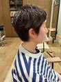 バリショートに切り込んだベースにトップだけピンパーマをかけました。ウェット仕上げでタイトにキメるのがオススメ!