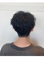 パーマを活かしセットできるよう顔まわりは長めに残し、横と後ろをスッキリ刈り上げ、上を少し被せてカットしました。ボリュームが出やすい箇所はバランスを見てすいてあるので、ジェルのスタイリング剤でサイドは軽く潰しトップにボリュームをつけています。