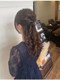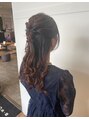 くるりんぱを2つ組み合わせ少しだけひきだし飾りなしとのことで、ゴム隠しに髪を巻きつけゴールドピンでとめました。