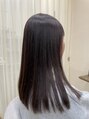 広がりにくく、収まりやすいようにカットしました。トリートメントでツヤ感をだしていきます。