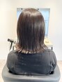 肩ラインの切りっぱなしボブ。ギリギリくくれる長さで赤味を抑えた質感のあるカラーが可愛い寒いこの時期にお洋服に似合うスタイルです◎