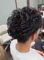 カットはスソスッキリでサイドも耳出しのワイルドショートパーマは前髪落ちてこないようにバックに流れるようにリバース巻きサイドも流れるように巻いてるのでよりスッキリした印象に。男性のパーマは本当にスタイリングが楽ですよ。是非お試し下さい。