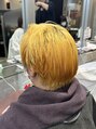 サイドにツーブロックを入れたスッキリショート。ブリーチ1回でできるカラーで艶感をアップ。カラーは資生堂アルティストカラーを使用。ダメージを最小限に抑えながら理想の色に。