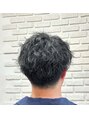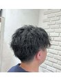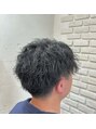 刈り上げセンターパートの縦落ちツイストスパイラル。ウェットでもドライでもしっかり動くパーマスタイル