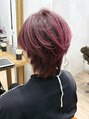 カットは目の横に毛束が落ちる絶妙な位置に調整し、クールさを演出。ウェイト位置(バックの膨らみ)を高めの位置に設定し軽く。少し残してメリハリを最大限に効かせたショートウルフです!2ブリーチベースに6ピンクベージュに少し塩基生をオン◆
