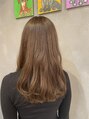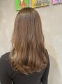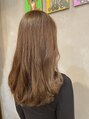 カットはロングのレイヤースタイルです。前上がりのスタイルですのでバックスタイルはラウンドです。カラーはマットアッシュの8トーンです。
