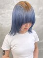 ベージュからブルーのルーツカラー(ブリーチ2回)