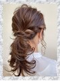 ふわっと華やかさを出しつつ、まとめ髪ではなく、ゆるっとポニーにすることでどんなファッションにも似合います◎