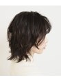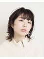 程よく重さを残したウルフスタイル。顔まわりにレイヤーを入れ前髪は眉下で厚みを残し、毛先は外ハネ、中間はカールを出したスタイル。