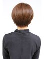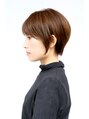 ツヤ感を強調したストレートのショート。顔周りはレイヤーを入れて顔を包みこむように切っています。毛先を少し重めにしていますので、乾かすだけで簡単にまとまるスタイルとなっています。カラーはせずにカットだけで女性自身の良さを引き出しています。