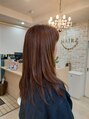前上がりのセミロングマッシュです。顔周りに髪が馴染むようにしています。ストレートアイロンで表面を通して、毛先を内に通します。カラーは、マロンブラウン。