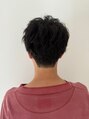 無造作にくしゃっと動きを出してボリューミーなスタイルです。襟足、耳周りはスッキリさせてメリハリの出るカット
