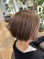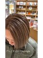 丸みのあるボブスタイルに、ベースは明るめのハイライトを入れた、ナチュラルハイトーンスタイル。
