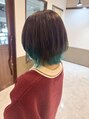 インナーカラー(グリーン系)×ショートボブ
