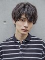 【men`s】フェザーパーマグレー刈り上げショートブルーカラー