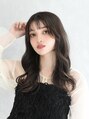 おしゃれな印象にしてくれる、韓国風ウェーブのスタイル。顔回りはリバース巻きで華やかな雰囲気に。眉ラインでカットしたシースルーバングでこなれた大人可愛さをプラスできます。