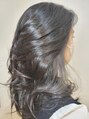 ロングレイヤー。ナチュラルな毛先にレイヤーを入れ、毛流れやエアリー感を強調。髪質改善サイエンスアクアで艶感をアップさせ、サラサラ、ツヤツヤに。