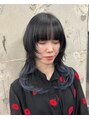 全体はブルーブラック、毛先だけブリーチしてブルーシルバー。顔まわりはしっかり切り込んでワンカールで動きの出るレイヤースタイルに。