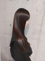 毛先を中心に少しレイヤーを入れておろしていても厚みが出にくいようにしています。ストレートでワンカールでも良いですし、アイロンで巻いても重くなりすぎないのでオススメです!根本のボリュームが出やすくなるように頭皮ケアもしています。