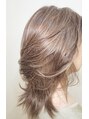 ロングレイヤー。ナチュラルでエアリー感のあるウルフ系のレイヤースタイル。明るめイノアカラーのベージュにハイライトを施し、更に動きを強調。