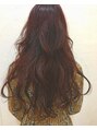 ロングヘアーをゆるっと巻きました☆カラーはボルドーレッドです。