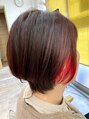 インナーのブリーチ部分に塩基性レッド他はピンク系※当店では基本ブリーチでの施術は行っておりません。