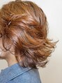 ダックテール。ミディアムのグラレイヤーにパーマクリープパーマをかけて、毛先をエアリー感あるフェザーのように柔らかさを強調したスタイル。明るめのヘアマニキュアで白髪ぼかしカラー。
