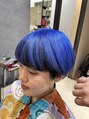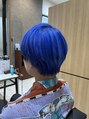 ビビッドなラベンダーブルーで鮮やかにインナーのブラックで引き締めてデザインをきめました。マッシュショートはかわいいですよね