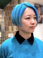 アンダー刈り上げのハンサム前下がりボブです。ブリーチありのブルーデザインカラーです。デザインカラー、ハイライトは得意なのでお任せください!英語接客可能です◎