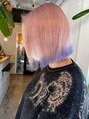 2ブリーチのデザインカラーです。カットは顎下3センチで切りっぱなしボブに!カシミアトリートメントでハイトーンでも艶髪に!