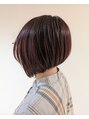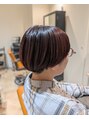 ちょっと個性的なデザインが可愛いアシンメトリーボブ(^^)レッドバイオレットカラーで艶も加わり、更に可愛さが引き立ちますね♪右側のマッシュショート~左の前下がりボブに繋げて可愛いも大人っぽいも一気に手に入れられる、オーダーメイドスタイルです◎