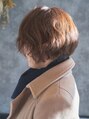 【カット】丸みのあるショートボブで柔らかく女性らしいシルエットに。ふんわりとした質感と動きのあるカットで、軽やかさとこなれ感を演出。【カラー】温かみのあるブラウンカラーでツヤと柔らかさをプラス。自然な立体感で、大人の品のあるスタイルに。