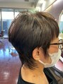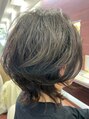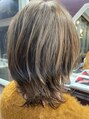流れのある前髪に伸ばしかけの襟足ウルフ、毛先にデジパーをかけたミディアムウルフ