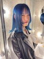 サファイアブルーなカラーが可愛い!髪質によりますがケアブリーチ1. 2回必須のたお洒落カラー#ツートンカラー#ミルクティーベージュ#ホワイトブリーチ#ハイトーン#ハイトーンカラー#ダブルカラー#wカラー#ケアブリーチ#インナーカラー