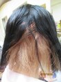 縮毛矯正ファイブスタートリプラインナーカラーが入っているヘアスタイルの縮毛矯正インナー部分に特殊専用トリートメントでしっかりカバーしてから、くせの強い所から薬を付けて行きますインナー部分は、酸性タイプで矯正して行きます