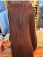 黒染めからの、赤み系カラーにカラーチェンジです!脱線剤で、一度色味をとってから赤みカラーをオン(*^^*)ツヤ感もでて可愛いカラーに♪髪色にインパクトがあるのでそのままでもお洒落見えなカラーです(^-^)カラーチェンジもご相談下さい!