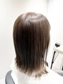 肩ラインの切りっぱなしボブ。艶と質感のあるカラーとXトリートメントを使用した根元から指通りの良い滑らかな手触りに◎