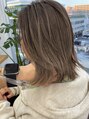 肩に付くくらいのボブカットで外はねしやすい長さに。カラーはわざと根本は暗めのグレージュ毛先は明るいグレージュをカラーして立体感を出してます。