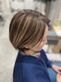 ステップボーンカットカットボブショートハイライト白髪ぼかし